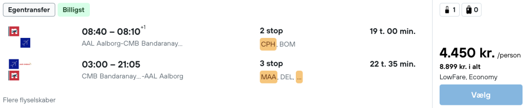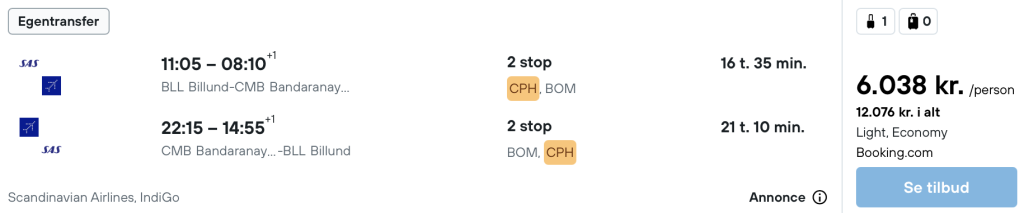 På vores flysøgemaskine har vi fundet billige billetter fra København, Aalborg og Billund til Sri Lanka i februar og marts måned.