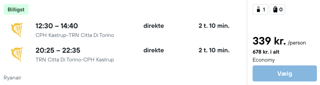 Flyprisen inkluderer kun en lille taske, men bagage kan tilkøbes.