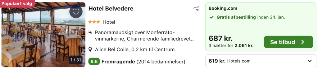 4 dage i Piemonte i Italien for kun 1.268,- per person inkl. fly og godt hotel med skøn beliggenhed og fantastisk udsigt!