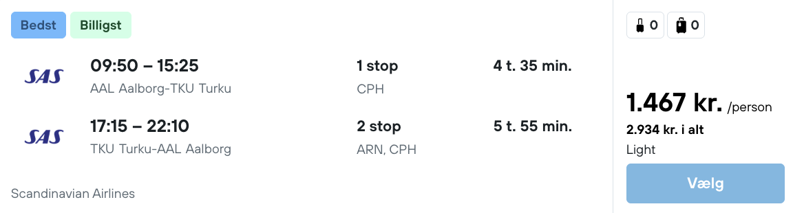 Vi har fundet billige billetter fra København, Billund og Aalborg til Turku i Finland:
