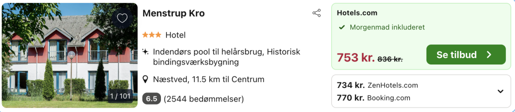 Ophold på Menstrup Kro for kun 367,- per person inkl. morgenmad!