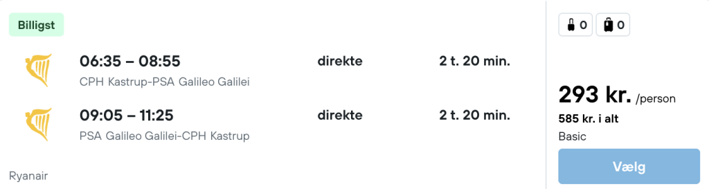 På vores flysøgemaskine har vi fundet billige flybilletter fra København til Pisa:
