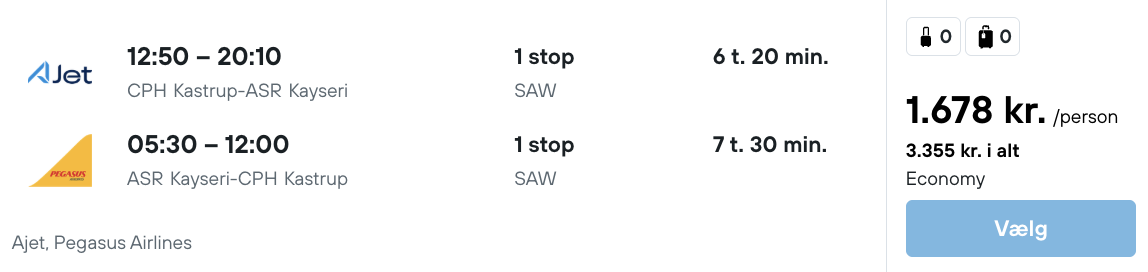 På vores flysøgemaskine har vi fundet billige billetter fra København til Kappadokien: