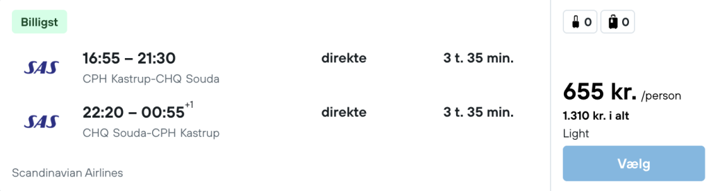 Flyprisen inkluderer kun en lille taske, men bagage kan tilkøbes.