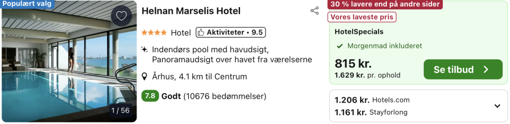 Bemærk: Den samlede pris for 2 personer i et dobbeltværelse er 1.629,- hvilket svarer til 815,- per person. Husk at logge ind / oprette en gratis bruger på trivago samt hos hoteludbyderen. Derved opnås den bedste pris! Rejs365 er ikke et rejsebureau, men en rejseside der finder gode tilbud! – Vi modtager kommission, men det påvirker ikke din pris! Læs mere her