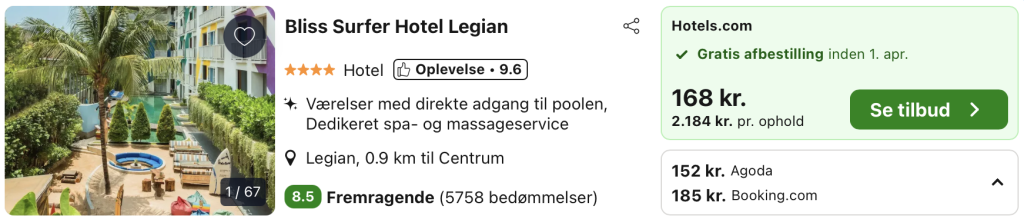 Hvis rejsen er med “Vis rejse” link, så er der tale om en pakkerejse, hvor fly og hotel bestilles på en gang