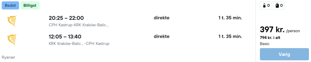 Flyprisen inkluderer kun en lille taske, men bagage kan tilkøbes.