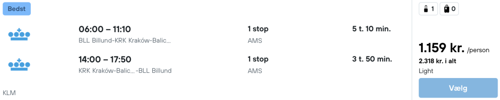 På vores flysøgningsmaskine har vi fundet billige flybilletter fra København og Billund til Krakow: