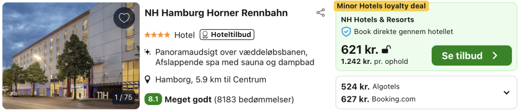 Bemærk: Den samlede pris for opholdet er 1.048,- for 2 personer i et dobbeltværelse, hvilket svarer til 524,- per person. Der kan være mindre prisforskelle på mobil og pc. Undersøg med fordel, hvor det er billigst inden bestilling. Rejs365 er ikke et rejsebureau, men en rejseside, der finder gode tilbud! – Vi modtager kommission, men det påvirker ikke din pris! Læs mere her |