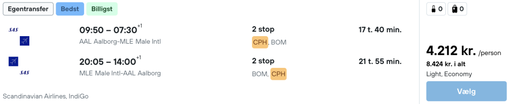 På vores flysøgemaskine har vi fundet billige billetter fra København og Aalborg til Maldiverne.