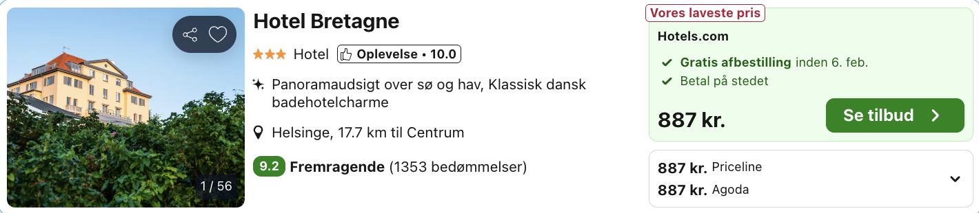Weekendophold på 4-stjernede Hotel Bretagne for kun 444,- per person!