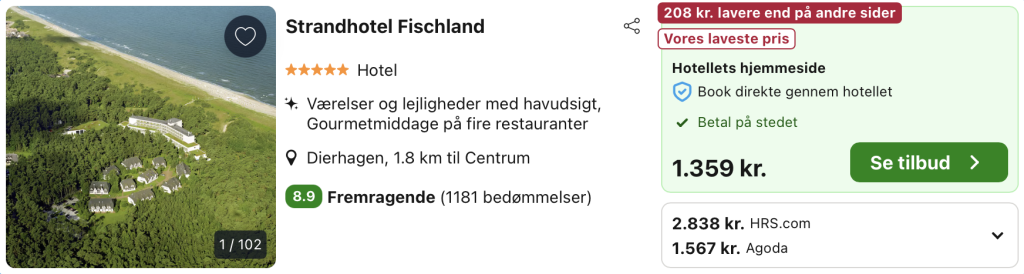 Bemærk: Den samlede pris for opholdet er 1.356,- for 2 personer i et dobbeltværelse, hvilket svarer til 678,- per person. Rejs365 er ikke et rejsebureau, men en rejseside, der finder gode tilbud! – Vi modtager kommission, men det påvirker ikke din pris! Læs mere her