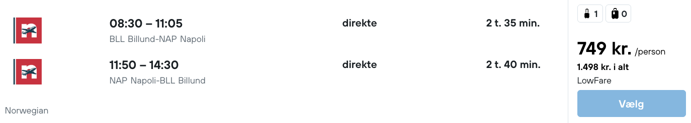 På vores flysøgemaskine har vi fundet billige billetter fra Aalborg, Billund og København til Napoli.