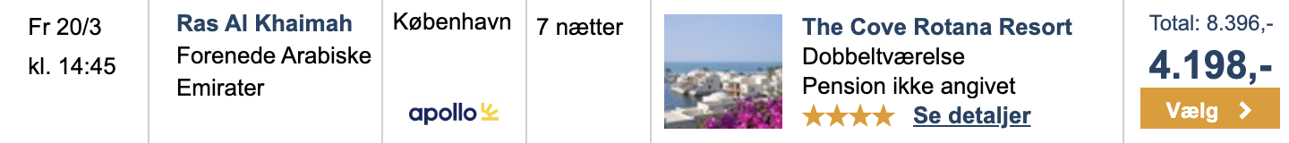 På Travelmarket har vi fundet et godt tilbud med Apollo til Ras Al Khaimah/Dubai: