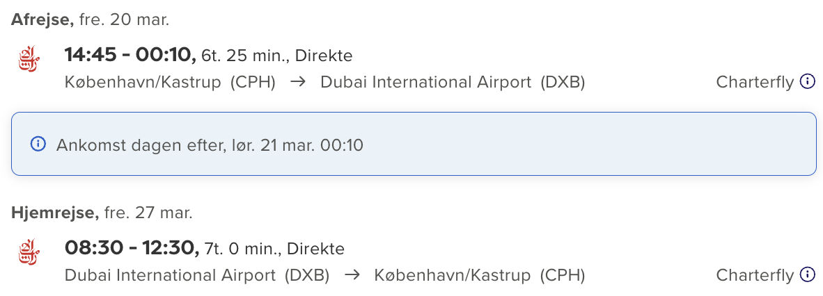 Hvis rejsen er med “Vis rejse” link, så er der tale om en pakkerejse, hvor fly og hotel bestilles på en gang.