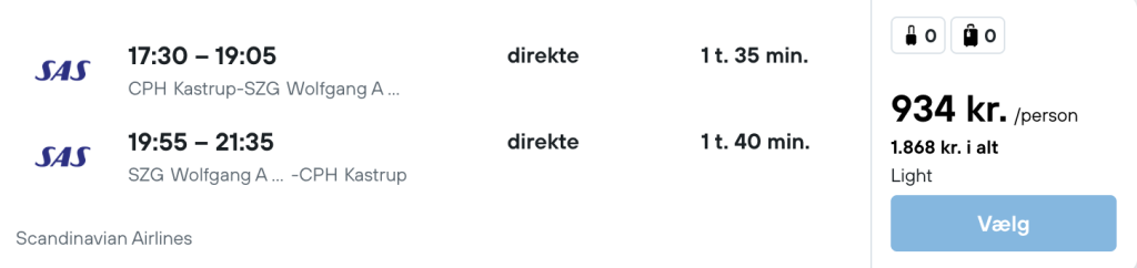 På vores flysøgningsmaskine har vi fundet billige flybilletter fra København til Salzburg: