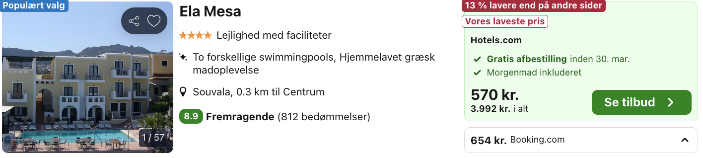 | Bemærk: Husk at lade søgningen blive helt færdig. Der kan være mindre prisforskelle på mobil og pc. Undersøg med fordel, hvor det er billigst inden bestilling. Vælg Laveste Pris på Trivago.