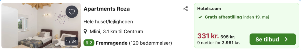 10 dage i Mlini for kun 2.080,- per person inkl. fly og flot lejlighedshotel tæt på stranden!