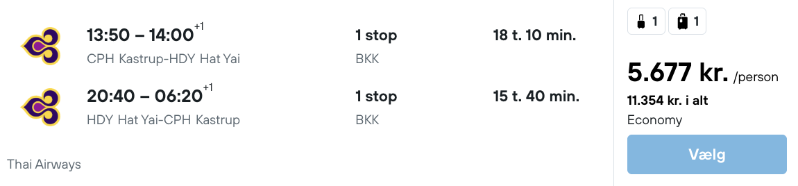 På vores flysøgemaskine har vi fundet billige flybilletter fra København til Hat Yai i Thailand: