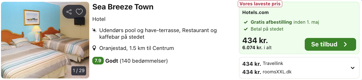 Hvis rejsen er med “Vis rejse” link, så er der tale om en pakkerejse, hvor fly og hotel bestilles på en gang.