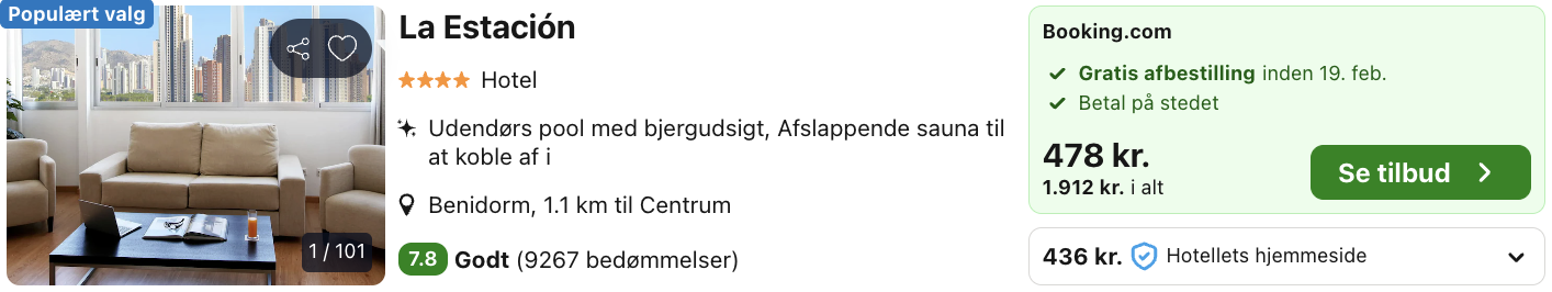 | Bemærk: Husk at lade søgningen blive helt færdig. Der kan være mindre prisforskelle på mobil og pc. Undersøg med fordel, hvor det er billigst inden bestilling. Vælg “vores laveste pris” på trivago, for at opnå den bedste pris på hotellet!