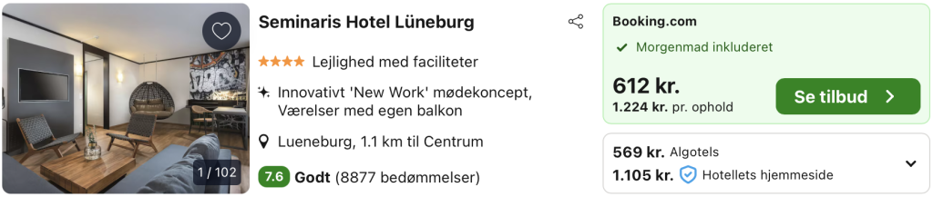Vi har taget udgangspunkt i et ophold fra den 6. – 8. februar på Seminaris Hotel Lüneburg, der ligger i udkanten af den historiske bymidte, lige ved det grønne kurpark-område og med kort afstand til Lüneburgs charmerende gamle gader, bindingsværkshuse og hyggelige caféer. Hotellet har en moderne og afslappet atmosfære med lyse værelser, store vinduer og god plads, ofte med udsigt til parken. Indretningen er inspireret af naturmaterialer og moderne konferencestil, hvilket gør stedet velegnet til både ferie, wellness og forretningsophold.