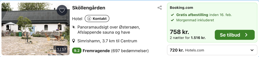 3 dages forlænget weekend i Simrishamn for kun 720,- per person inkl. super hyggeligt hotel med morgenmad og udsigt over havet!