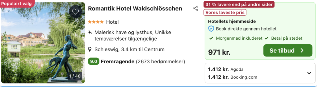 Bemærk: Den samlede pris for opholdet er 971,- for 2 personer i et dobbeltværelse, hvilket svarer til 486,- per person. Rejs365 er ikke et rejsebureau, men en rejseside, der finder gode tilbud! – Vi modtager kommission, men det påvirker ikke din pris! Læs mere her |