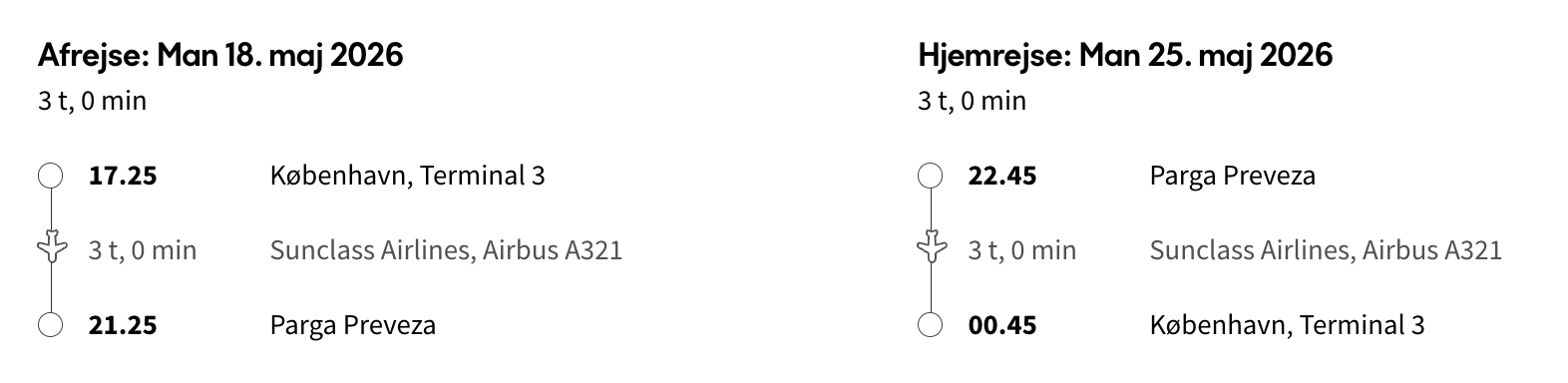 Hvis rejsen er med “Vis rejse” link, så er der tale om en pakkerejse, hvor fly og hotel bestilles på en gang.