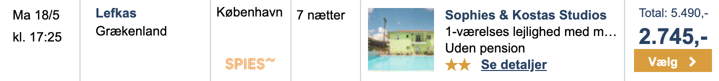 På Travelmarket har vi fundet gode tilbud med Spies fra København til Lefkas: