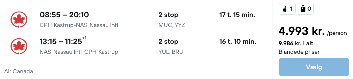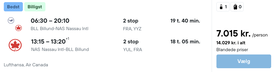 På vores flysøgemaskine har vi fundet billige billetter fra København og Billund til Bahamas.