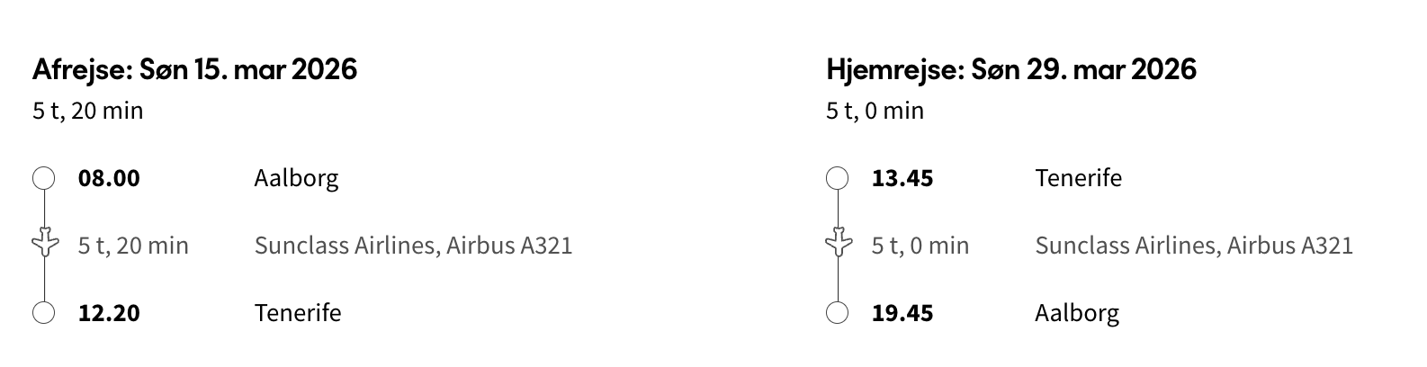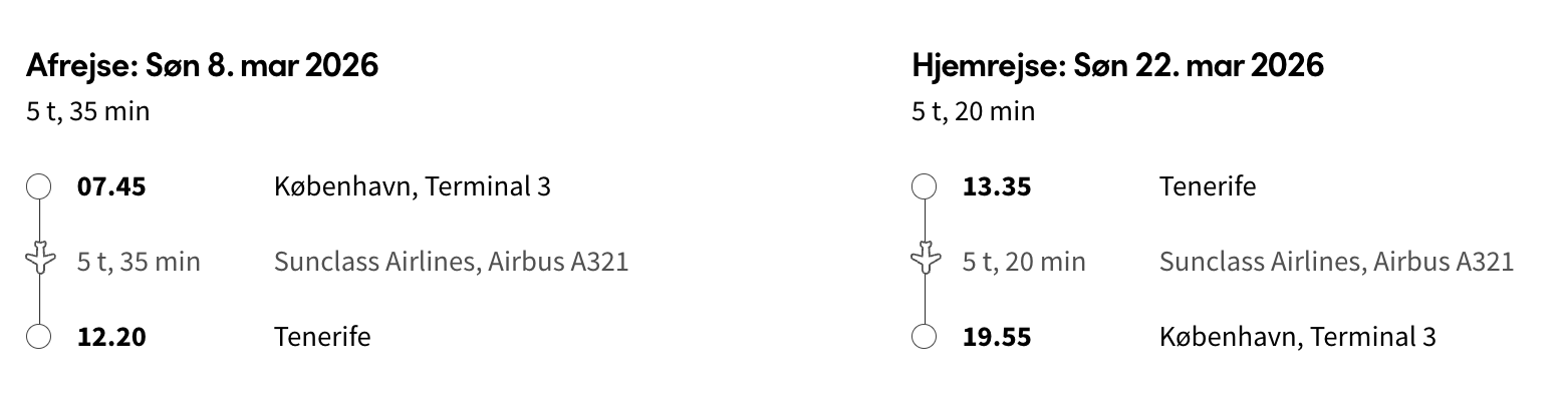 Hvis rejsen er med “Vis rejse” link, så er der tale om en pakkerejse, hvor fly og hotel bestilles på en gang.