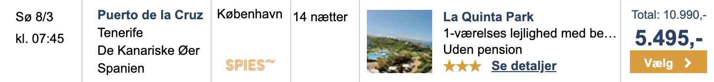 På Travelmarket har vi fundet gode tilbud med Spies fra Aalborg og København til Tenerife: