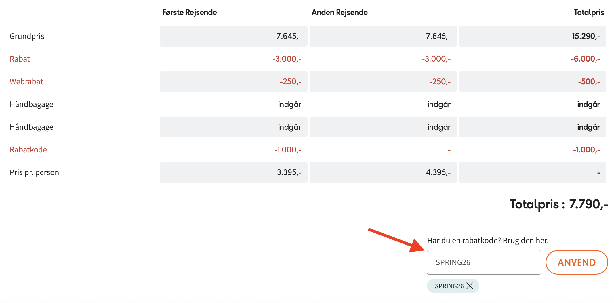 | Bemærk: Travelmarket og Spies viser den samlede pris for 2 personer.