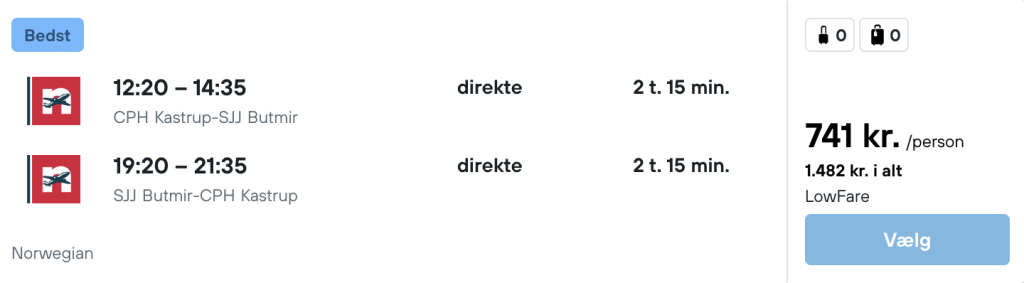 Flyprisen inkluderer kun en lille taske, men bagage kan tilkøbes.