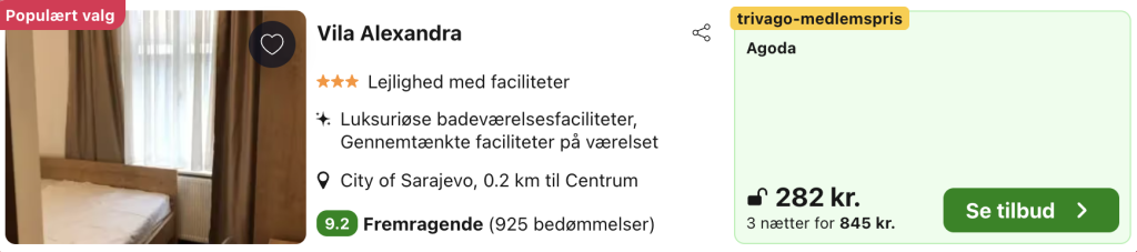 4 dage i Sarajevo for kun 1.164,- per person inkl. fly og 3-stjernet hotel med god beliggenhed!