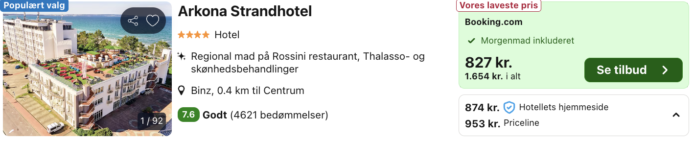 3 dages forlænget weekend på 4-stjernede Arkona Strandhotel for kun 827,- per person inkl. morgenmad!