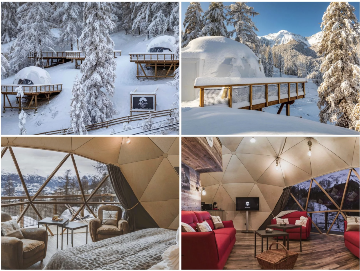 De smukke igloer i Alpin d’Hôme byder på en unik oplevelse i form af at falde i søvn under en flot aftenhimmel og vågne op til en klar blå himmel. I byen Les Orres finder du de moderne indrettede igloer, som er velegnet til 2-6 personer. Igloerne har separate soveværelser og et badeværelse. Der er også plads til alt dit skiudstyr, og desuden finder du skovarmere til at holde skistøvlerne varme og tørre til næste dag. Fra de store vinduer har du en direkte udsigt til det flotte bjerglandskab, og skiliften befinder sig blot 100 meter derfra. Hver morgen bliver morgenmaden leveret lige til døren, og når du vender tilbage fra pisterne senere på dagen, så serveres der eftermiddagssnacks til at stille den værste sult.