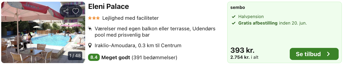 1 uge på Kreta med halvpension i sommerferien for kun 2.675,- per person inkl. fly, 3-stjernet hotel med pool og god beliggenhed tæt på stranden!