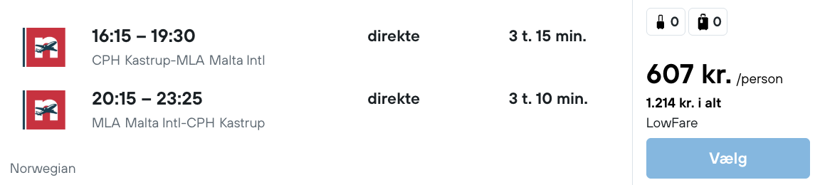 På vores flysøgningsmaskine har vi fundet billige flybilletter fra København til Malta: