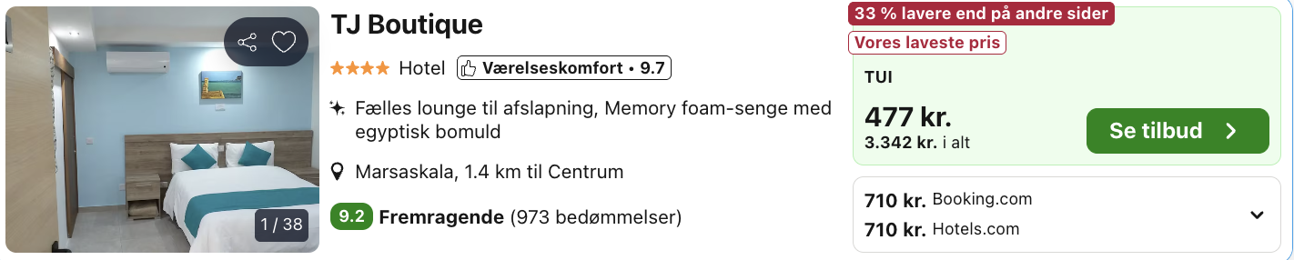 | Husk at lade søgningen blive helt færdig. Vælg “Vores laveste pris” på trivago, for at opnå den bedste pris på hotellet. Der kan være mindre prisforskelle på mobil og pc.