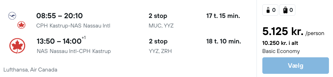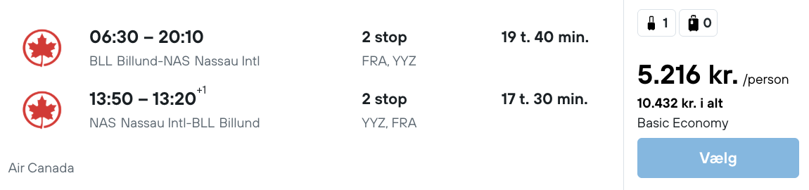 På vores flysøgemaskine har vi fundet billige billetter fra København og Billund til Bahamas.