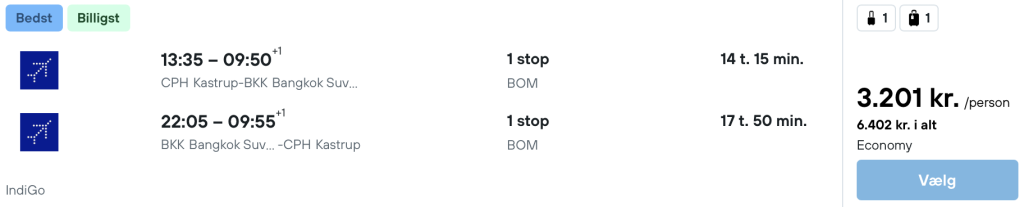 Hvis rejsen er med “Vis rejse” link, så er der tale om en pakkerejse, hvor fly og hotel bestilles på en gang.