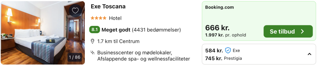 Husk at logge ind / oprette en gratis bruger på trivago samt hoshoteludbyderen. Derved opnås den bedste pris!