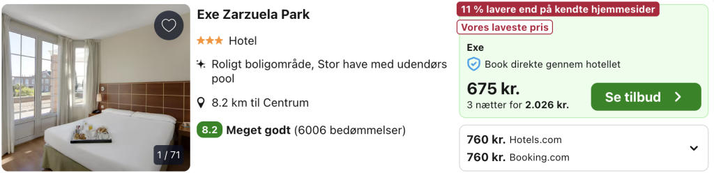 Hvis rejsen er med “Vis rejse” link, så er der tale om en pakkerejse, hvor fly og hotel bestilles på en gang.