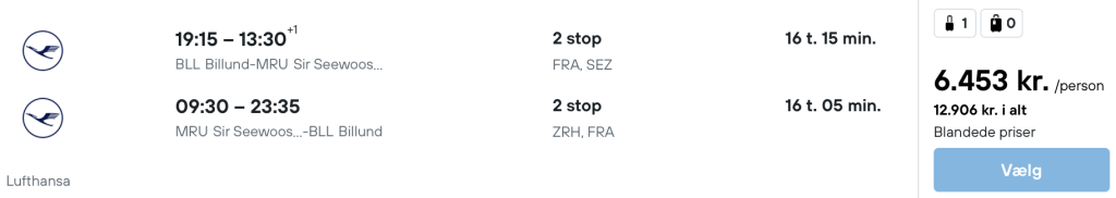 Vi har fundet billige fly fra København og Billund til Mauritius: