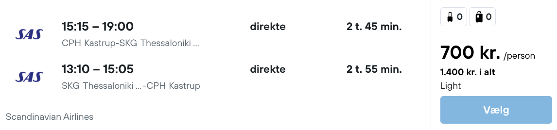 Flyprisen inkluderer kun en lille taske, men bagage kan tilkøbes.