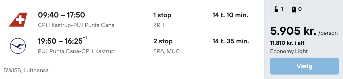 På vores flysøgemaskine har vi fundet billige billetter fra København og Billund til Punta Cana: