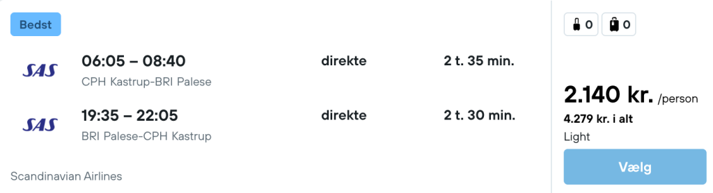 Flyprisen inkluderer kun en lille taske, men bagage kan tilkøbes.