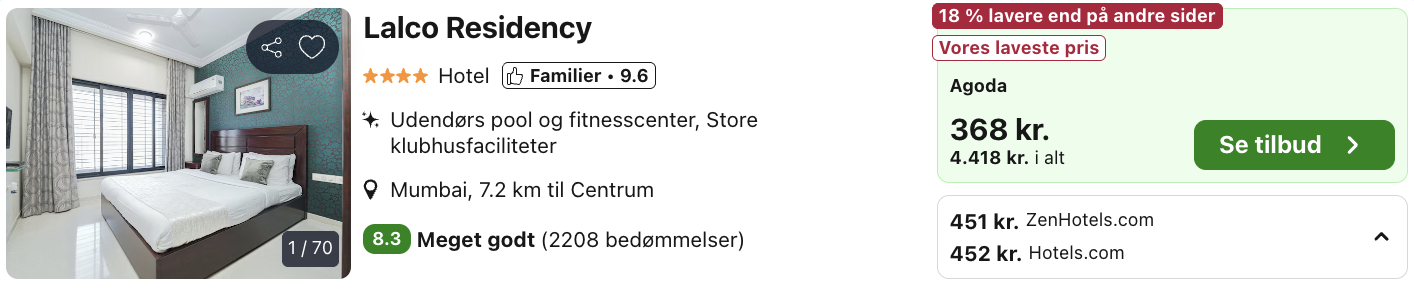 F.eks. 11 dage i Mumbai for kun 4.836,- per person inkl. fly, bagage, 4-stjernet hotel med pool!